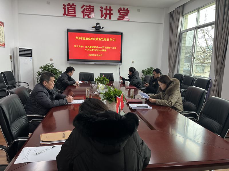 2月18日,州科协开展了第三次周五学习,学习内容为党风廉政建设—学习贯彻十九届中央纪委六次全会精神,州科协全体干部参加。