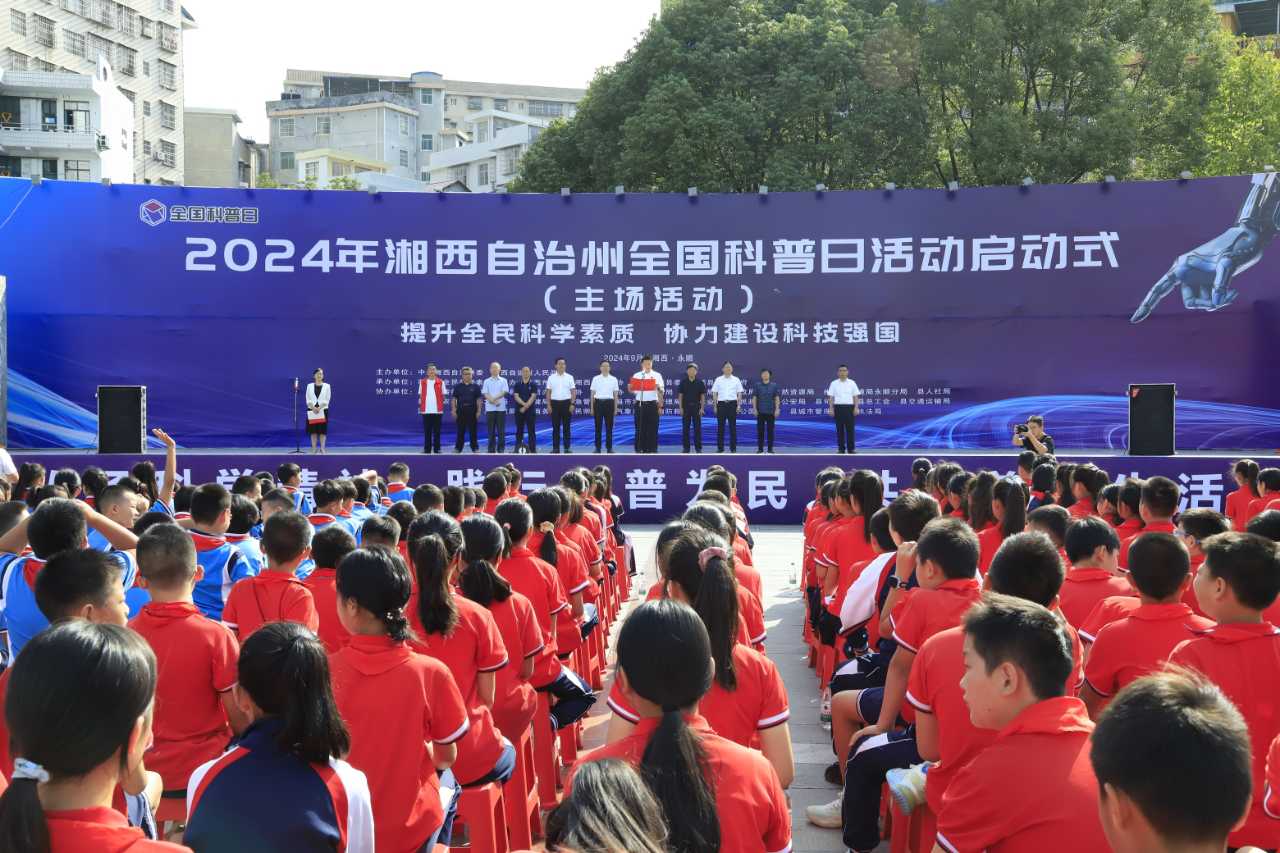 9月23日上午,湘西自治州2024年全国科普日活动启动仪式(主场活动)在永顺县湘潭文化休闲广场举行。湘西州政协副主席印钊出席活动并讲话,湘西州人大常委会副主任胡恩平宣布活动启动。州政府办、州科协、州老科协领导,中共永顺县委、县人大、县政府、县政协领导及县直相关单位、各县市科协领导、工作人员、科技志愿者、学校师生和永顺县群众代表共800余人参加活动。