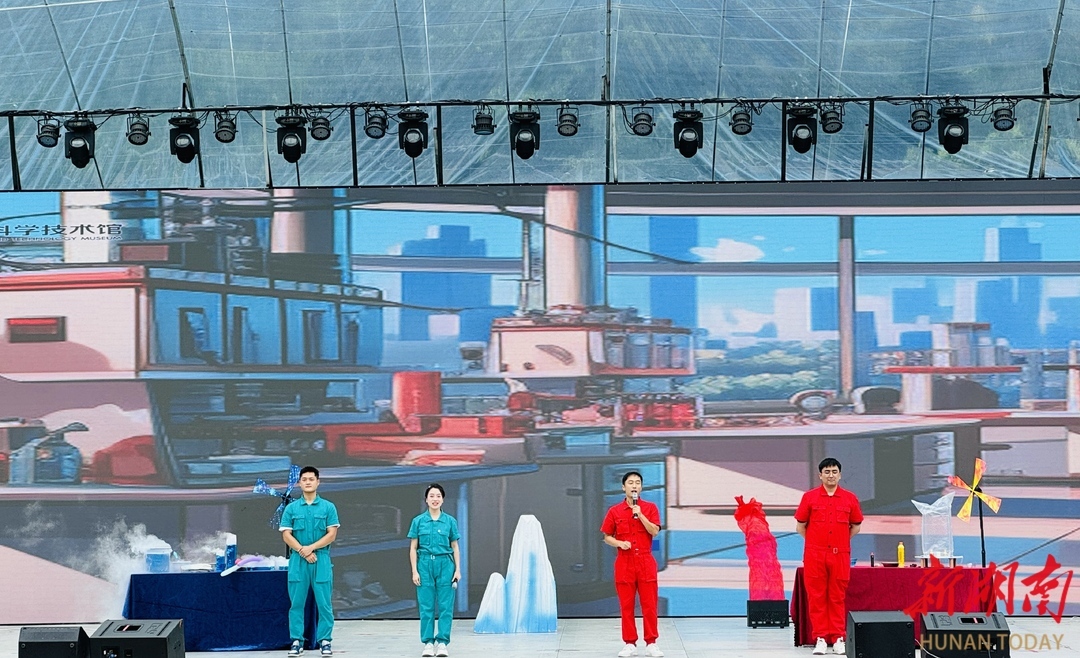 启动仪式后,主场活动精彩纷呈。省科技馆工作人员带来的“火焰掌”“液氮小黄鸭”“气球复原”等科普秀表演,用趣味实验揭开科学奥秘,引得现场观众阵阵惊呼;科普文艺表演将科学知识融入歌舞,让科普更接地气、更有温度。